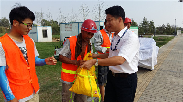 7月28日下午,開發(fā)公司副總裁劉建華帶領(lǐng)公司相關(guān)部門負(fù)責(zé)人來(lái)到公司代建項(xiàng)目工地,現(xiàn)場(chǎng)慰問(wèn)了奮戰(zhàn)在高溫一線的企業(yè)員工和建筑工人,并親自給他們遞上了毛巾、肥皂、清涼油等防暑降溫物品。