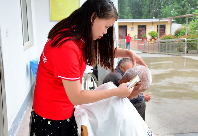 志愿者們趕到敬老院后便開始忙碌了起來,有的去擇菜洗菜,有的去包餃子,還有的幫老人理發(fā)、陪老人聊天,志愿者中的工程管理人員幫助老人檢修房屋。原本沉寂的敬老院頓時熱鬧了起來。志愿者們不但給老人們帶來了毛巾、洗發(fā)水等日常用品,更是親手給老人們送上了牛奶、粽子、香蕉等物品,給老人在夏日送去一絲清涼。最后志愿者看著老人們吃上了親手包好的餃子,大家都開心的笑了。