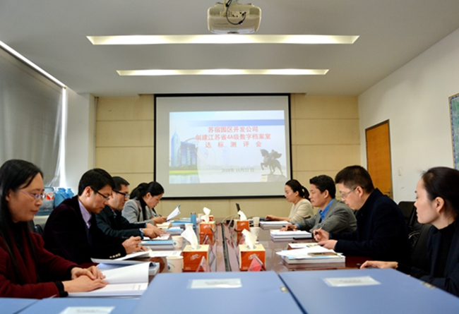 11月22日下午,開發(fā)公司創(chuàng)建省4A級數(shù)字檔案室迎來了由宿遷檔案局、宿豫區(qū)檔案局、泗陽縣檔案局組成的5人評審組現(xiàn)場測評驗收。開發(fā)公司成功晉級為宿遷市各開發(fā)區(qū)、園區(qū)中首個省4A級數(shù)字檔案室。測評會議由宿遷市檔案局副局長李華東主持。