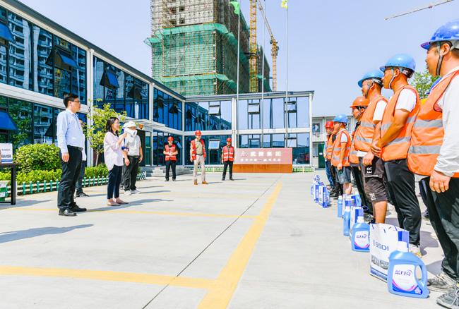 炎炎夏日送清涼,絲絲關懷暖人心。持續(xù)高溫悶熱天氣,給堅守一線工人帶來了嚴峻“烤”驗,也時刻牽動著公司領導的心。8月10日上午,城發(fā)公司董事長、總經理李蘭霞,總經理助理陸永軍、張驥一行對公司在建項目一線施工人員和明日鄰里中心物業(yè)人員開展防暑降溫送清涼慰問活動,為奮戰(zhàn)在高溫一線的勞動者們送上一份清涼、一份關懷。