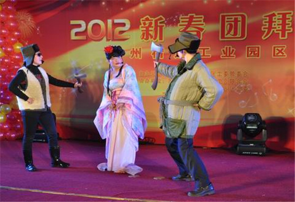 團拜會在《年輕的朋友來相會》嘹亮的歌聲中拉開序幕,園區(qū)干部職工、客商代表自編自導(dǎo)自演的《招商狂想曲》、《蘇宿論壇》等一個個精彩的文藝節(jié)目,博得了與會人員陣陣掌聲,愉悅、喜慶的氛圍讓大家感受到園區(qū)一家人的溫馨。