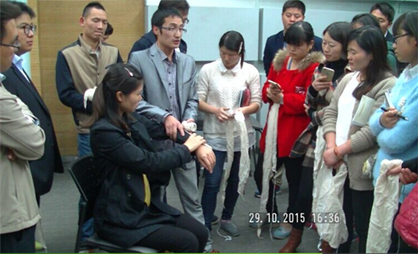 理論課上,講師們詳細(xì)生動(dòng)地介紹了應(yīng)急救護(hù)的基本知識,講述止血、包扎、固定和搬運(yùn)等四方面內(nèi)容。實(shí)訓(xùn)課上,參訓(xùn)者饒有興致地進(jìn)行一對一實(shí)際操作,講師們現(xiàn)場進(jìn)行指點(diǎn)。