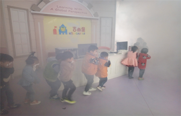 上午10點,消防演習正式開始,幼兒園里響起了緊急集合的報警聲。只見小朋友們在老師的指導下,雙手用濕毛巾捂著口鼻快速有序的從兩個樓梯和教室邊門逃生。在老師的帶領下歷時3分鐘就安全疏散到空曠的操場上,整個演練活動緊張有序。