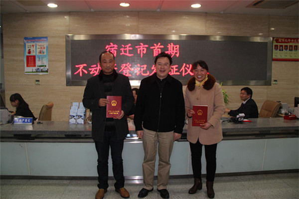 市國土局局長趙昌說:“園區(qū)不動(dòng)產(chǎn)登記走在全市前列,今天宿遷市首期不動(dòng)產(chǎn)權(quán)證書的正式頒發(fā),標(biāo)志著不動(dòng)產(chǎn)統(tǒng)一登記制度在園區(qū)范圍內(nèi)全面啟動(dòng)?!?