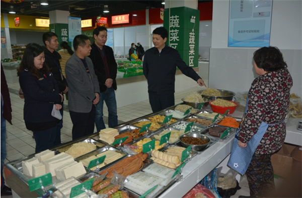 戈亮一行現(xiàn)場聽取了菜場負責(zé)人開業(yè)準備工作情況匯報,實地察看了生鮮菜場規(guī)劃布局、開業(yè)方案、食品安全臺賬、食品安全檢測室設(shè)備,與各經(jīng)營戶親切交談。