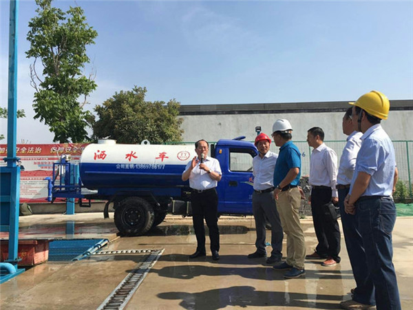 觀摩中,李榮錦對(duì)園區(qū)揚(yáng)塵治理工作給予了高度評(píng)價(jià),對(duì)現(xiàn)場(chǎng)自動(dòng)沖洗設(shè)施、灑水車、文化教育長(zhǎng)廊、施工展示區(qū)等一系列先進(jìn)做法表示充分肯定,并要求在全市范圍內(nèi)推廣。